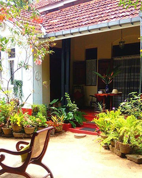 Hotel: Das ehemalige Herrenhaus (Walauwa) liegt in einem schönen tropischen Garten mit viel Platz. Die Zimmer sind im Herrenhaus oder kleinen separaten Häusern. Frühstücksraum, Rezeption.